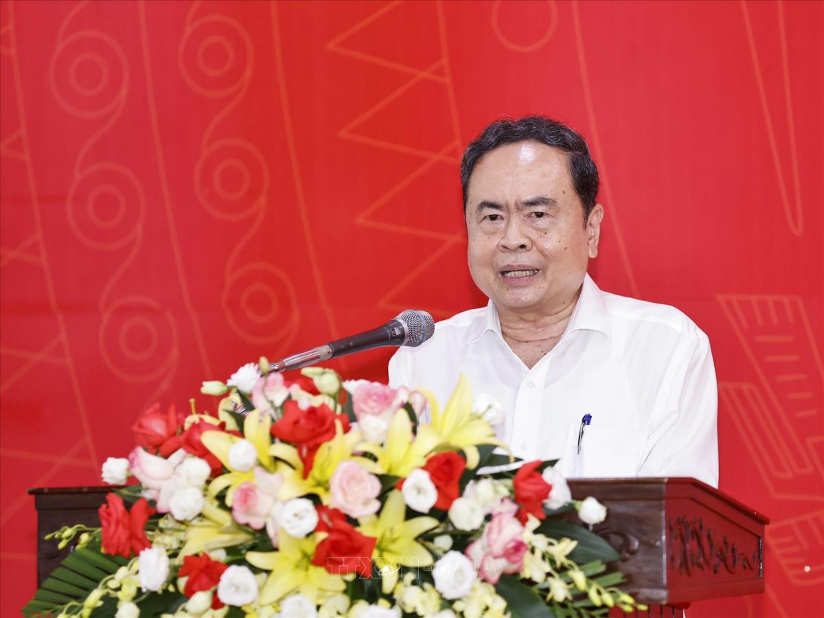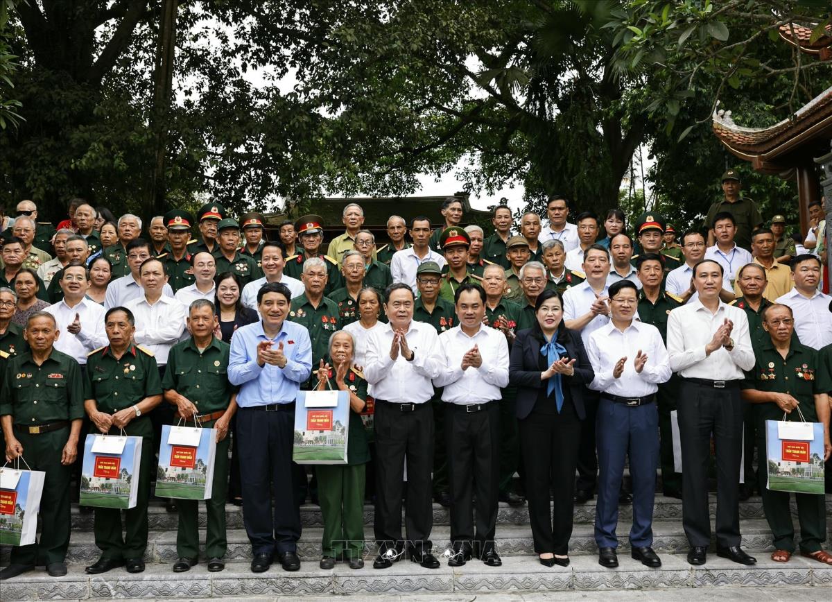 Chủ tịch Quốc hội Trần Thanh Mẫn với gia đình chính sách, người có công với cách mạng tại Khu di tích lịch sử Quốc gia 27/7, tỉnh Thái Nguyên (20/7/2025). Ảnh: Doãn Tấn - TTXVN