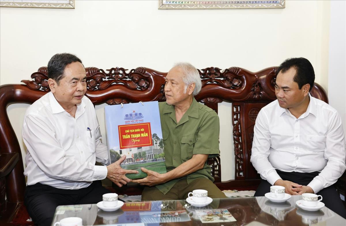 Chủ tịch Quốc hội Trần Thanh Mẫn thăm, tặng quà gia đình thương binh Hoàng Trọng Tân (20/7/2025): Doãn Tấn - TTXVN