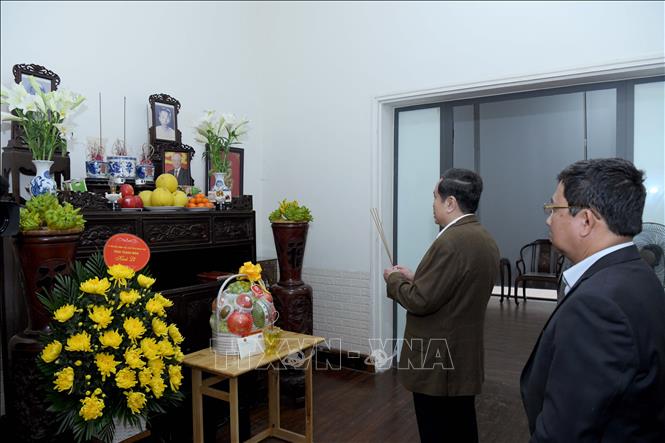 Chủ tịch Quốc hội Trần Thanh Mẫn thắp hương tưởng nhớ cố Chủ tịch Quốc hội Lê Quang Đạo. Ảnh: TTXVN phát