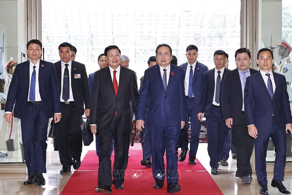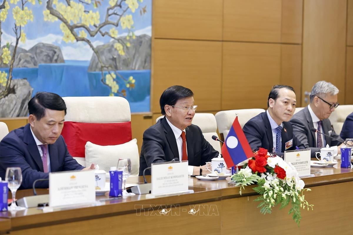[Photo] Chủ tịch Quốc hội Trần Thanh Mẫn tiếp Tổng Bí thư, Chủ tịch nước Lào Thongloun Sisoulith