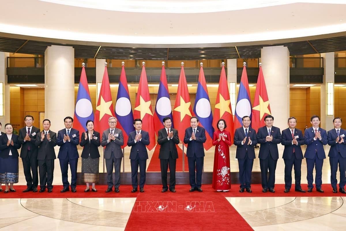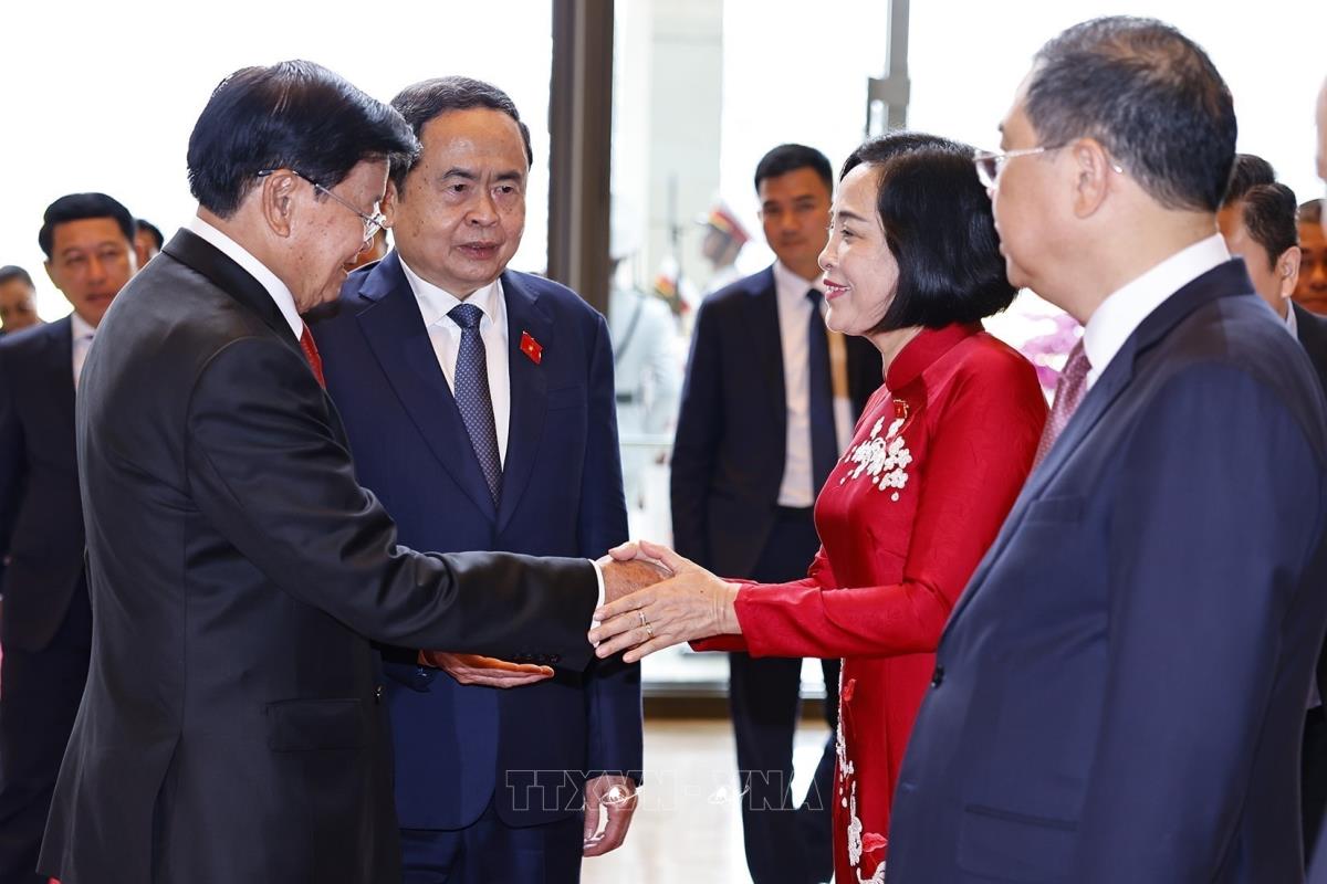 Chủ tịch Quốc hội Trần Thanh Mẫn và Tổng Bí thư, Chủ tịch nước Lào Thongloun Sisoulith với các đại biểu (2/9/2025). Ảnh: Doãn Tấn - TTXVN