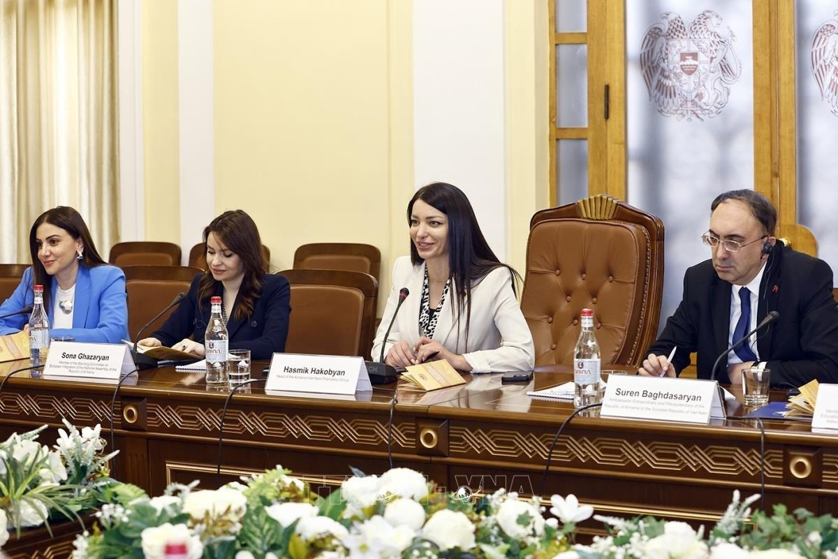 Trong khuôn khổ chuyến thăm chính thức Cộng hòa Armenia, sáng 3/4/2025 (giờ địa phương), Chủ tịch Quốc hội Trần Thanh Mẫn tiếp Trưởng Nhóm nghị sỹ hữu nghị Armenia - Việt Nam Hasmik Hakobyan.