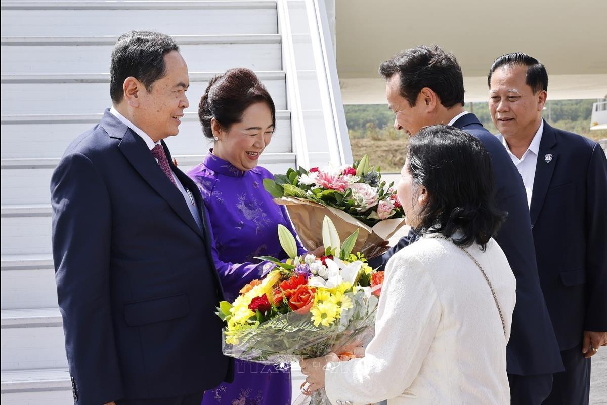 Hà Nội (TTXVN 27/7/2025) Theo đặc phái viên TTXVN, chiều 27/7 theo giờ địa phương (tức tối 27/7 giờ Hà Nội), Chủ tịch Quốc hội Trần Thanh Mẫn và Phu nhân Nguyễn Thị Thanh Nga cùng Đoàn đại biểu cấp cao Việt Nam đã đến Geneva, Thụy Sĩ, bắt đầu tham dự Hội nghị các Chủ tịch Quốc hội thế giới lần thứ 6 và tiến hành các hoạt động song phương tại Thụy Sĩ từ ngày 27-30/7/2025.