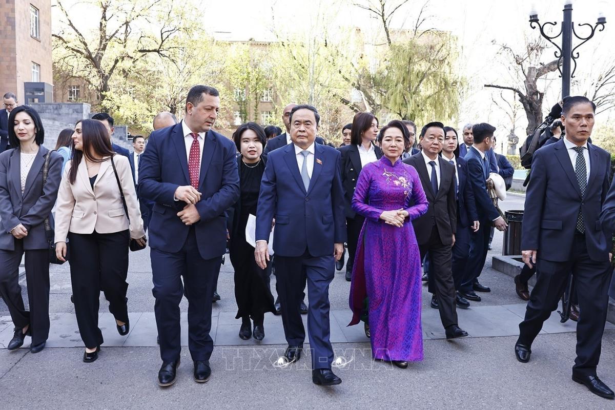 Chủ tịch Quốc hội Trần Thanh Mẫn và Phu nhân thăm Đại học Tổng hợp Quốc gia Yerevan (4/4/2025). Ảnh: Doãn Tấn – TTXVN