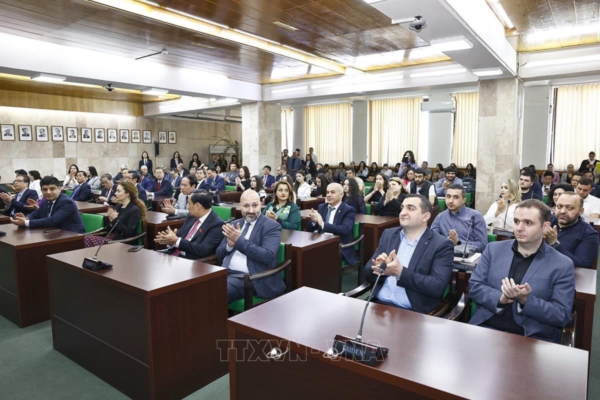 Đại biểu dự chương trình tại Đại học Tổng hợp Quốc gia Yerevan (4/4/2025). Ảnh: Doãn Tấn – TTXVN