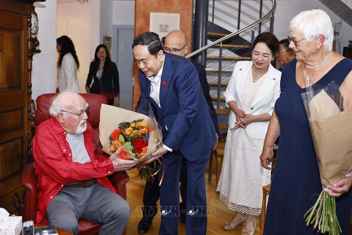 Chủ tịch Quốc hội Trần Thanh Mẫn và Phu nhân Nguyễn Thị Thanh Nga đến thăm gia đình ông bà Jacques Savary (28/7/2025). Ảnh: Doãn Tấn – TTXVN