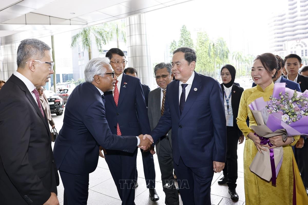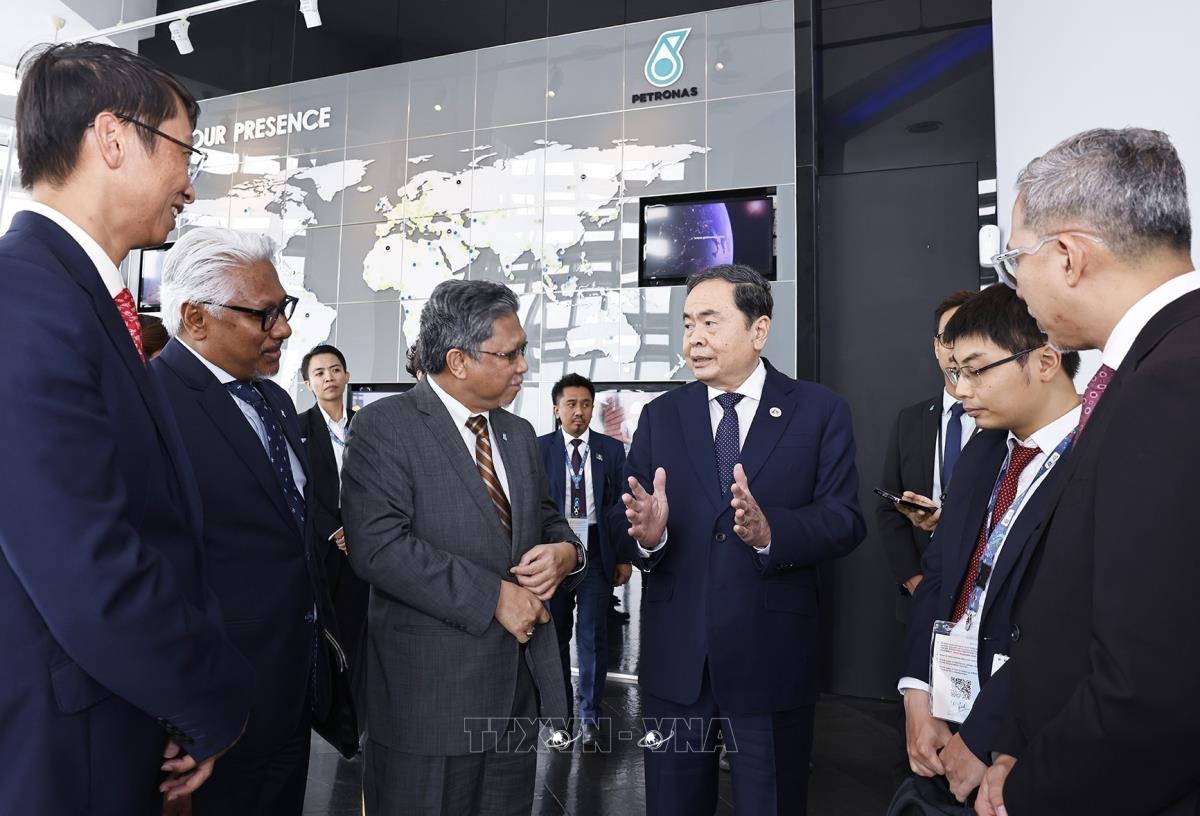 Hà Nội (TTXVN 17/9/2025) Trong chương trình tham dự Đại hội đồng liên Nghị viện các nước ASEAN lần thứ 46 (AIPA-46) và thăm chính thức Malaysia. Chiều 17/9/2025, tại thủ đô Kuala Lumpur, Chủ tịch Quốc hội Trần Thanh Mẫn và Phu nhân thăm và làm việc với Tập đoàn Petronas.