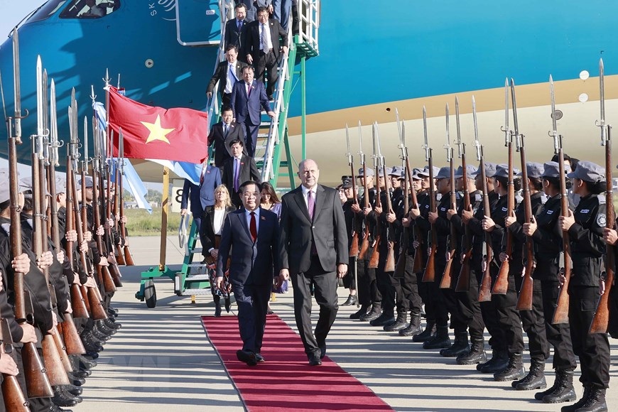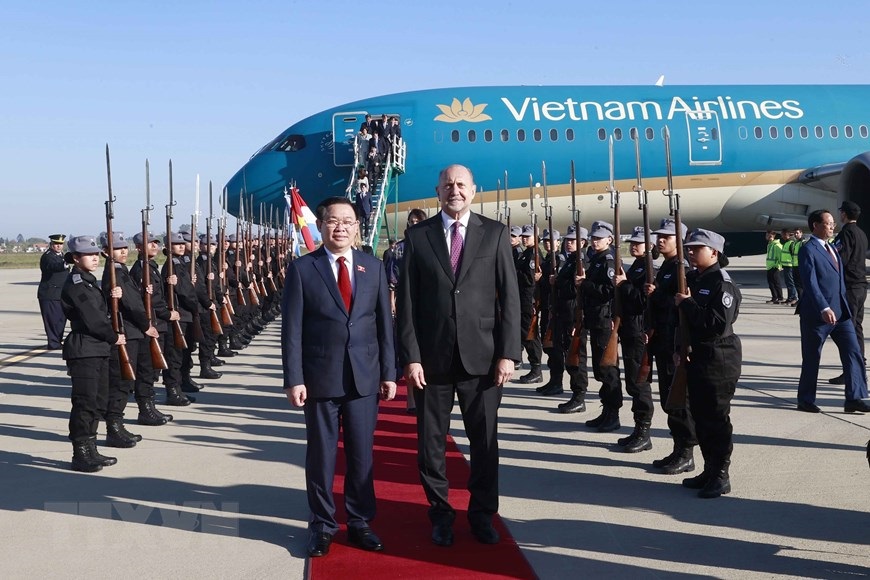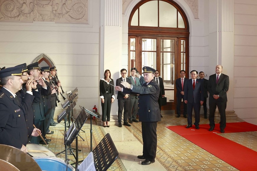 Lễ đón Chủ tịch Quốc hội Vương Đình Huệ tại Sân bay quốc tế Rosario. (Ảnh: Doãn Tấn/TTXVN)