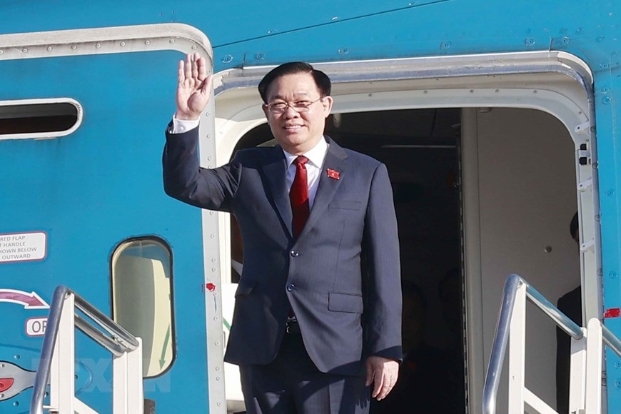 Chủ tịch Quốc hội Vương Đình Huệ vẫy chào đại biểu tại Sân bay quốc tế Rosario. (Ảnh: Doãn Tấn/TTXVN)