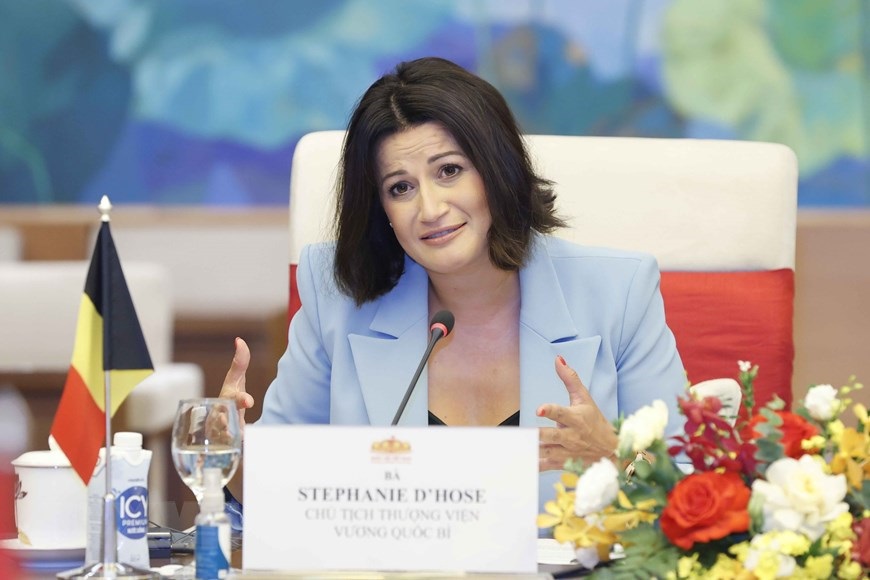 Chủ tịch Thượng viện Vương quốc Bỉ Stéphanie D'Hose phát biểu. (Ảnh: Doãn Tấn/TTXVN)