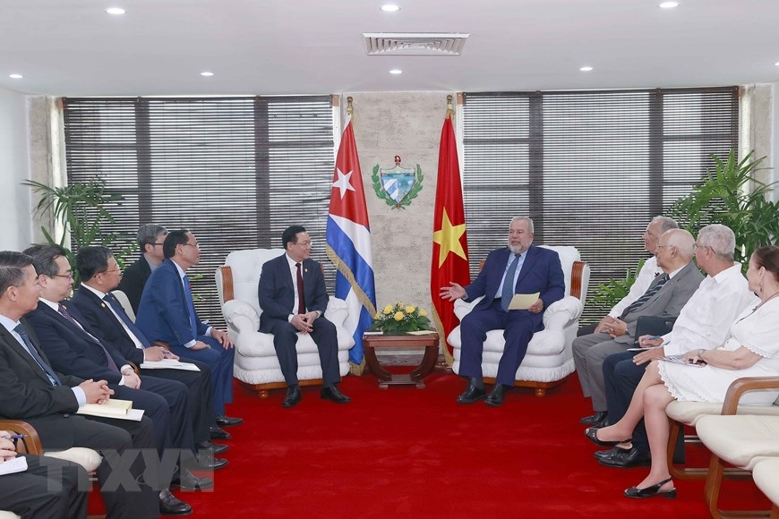 Chủ tịch Quốc hội Vương Đình Huệ hội kiến Thủ tướng Cộng hòa Cuba Manuel Marrero Cruz. (Ảnh: Doãn Tấn/TTXVN)