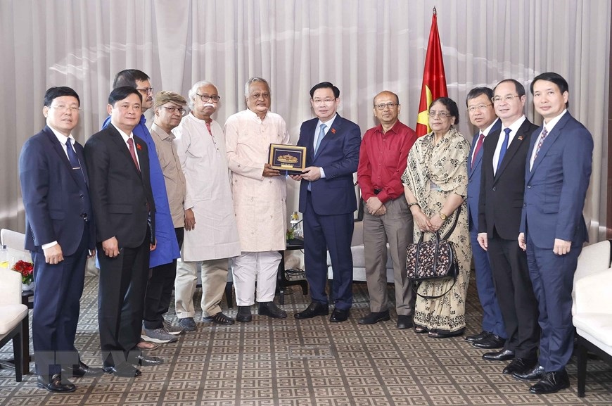Chủ tịch Hội Hữu nghị Bangladesh – Việt Nam tặng Chủ tịch Quốc hội Vương Đình Huệ bức hình sự kiện có chân dung Chủ tịch Hồ Chí Minh. (Ảnh: Doãn Tấn/TTXVN)