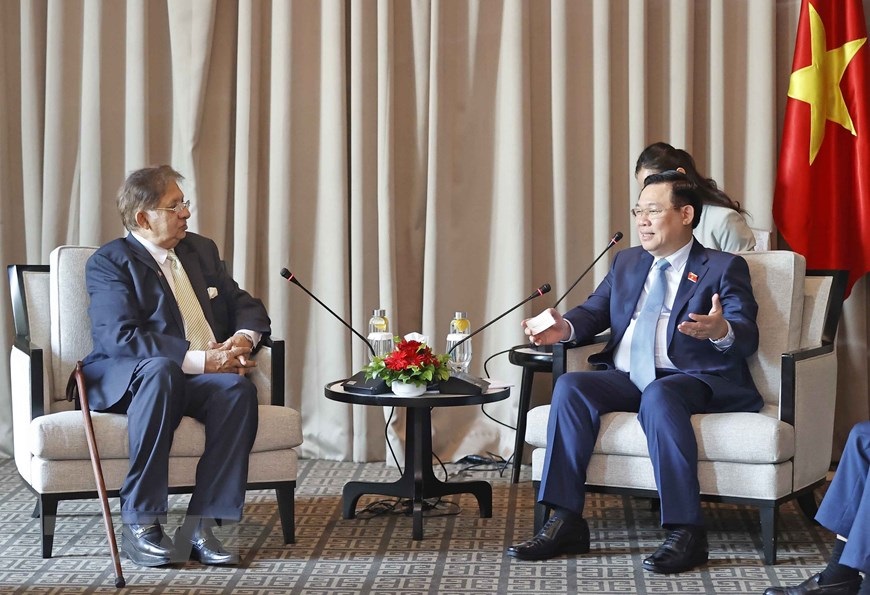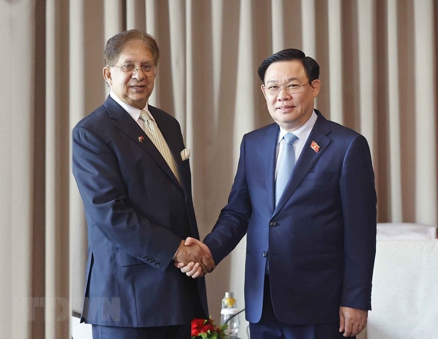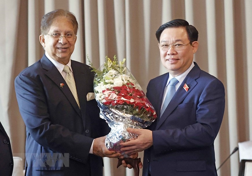 Chủ tịch Quốc hội Vương Đình Huệ tiếp Chủ tịch Phòng Thương mại và Công nghiệp Dhaka Md. Sameer Sattar. (Ảnh: Doãn Tấn/TTXVN)