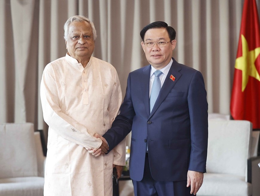Chủ tịch Quốc hội Vương Đình Huệ tiếp ông Monjur Quader, Phó Chủ tịch Cấp cao Phòng Thương mại và Công nghiệp Bangladesh-Việt Nam. (Ảnh: Doãn Tấn/TTXVN)