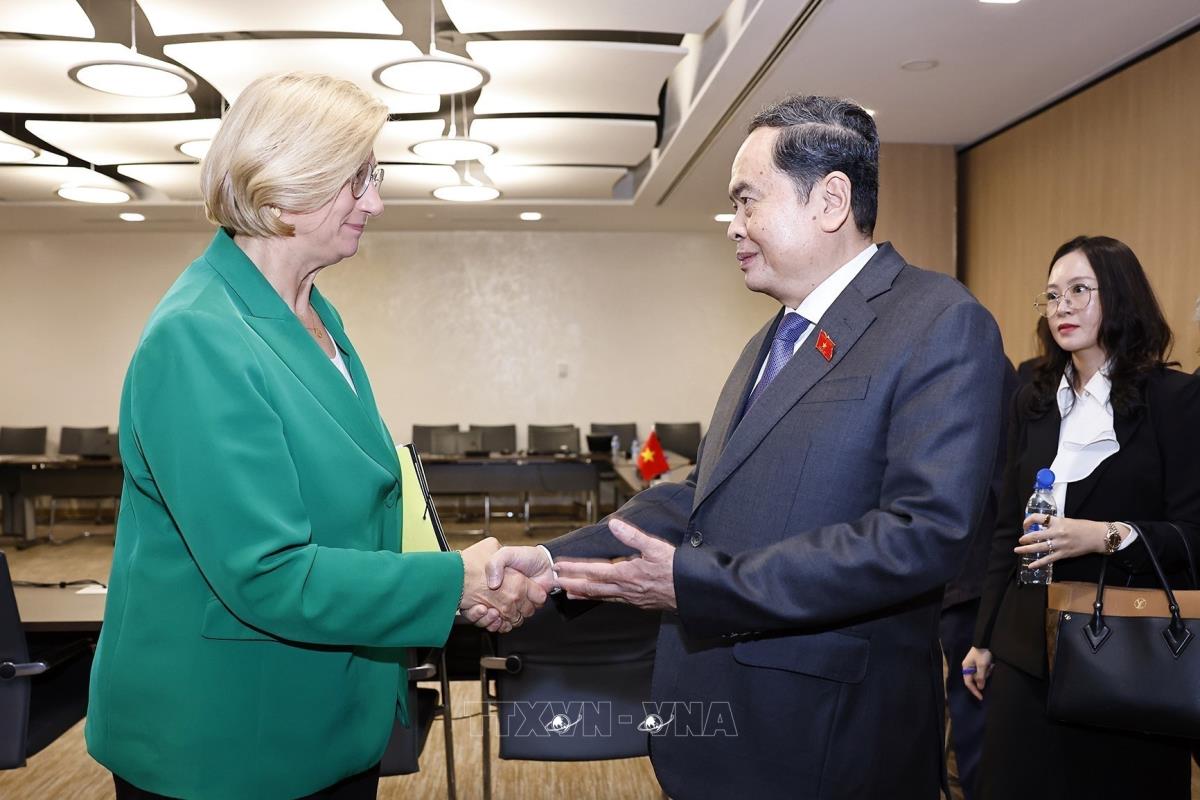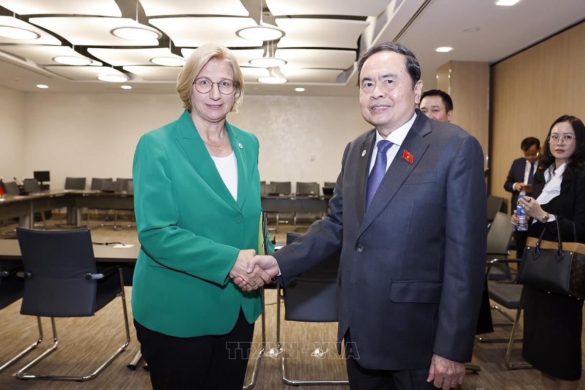 Trong khuôn khổ chương trình tham dự Hội nghị các Chủ tịch Quốc hội thế giới lần thứ 6 và tiến hành các hoạt động song phương tại Thụy Sĩ, sáng 30/7/2025, giờ địa phương (chiều cùng ngày, giờ Hà Nội), tại thành phố Geneva, Chủ tịch Quốc hội Trần Thanh Mẫn gặp Chủ tịch Thượng viện CHLB Đức Anke Rehlinger.