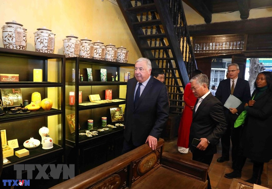[Photo] Chủ tịch Thượng viện Pháp tham quan một số địa danh tại phố cổ Hà Nội