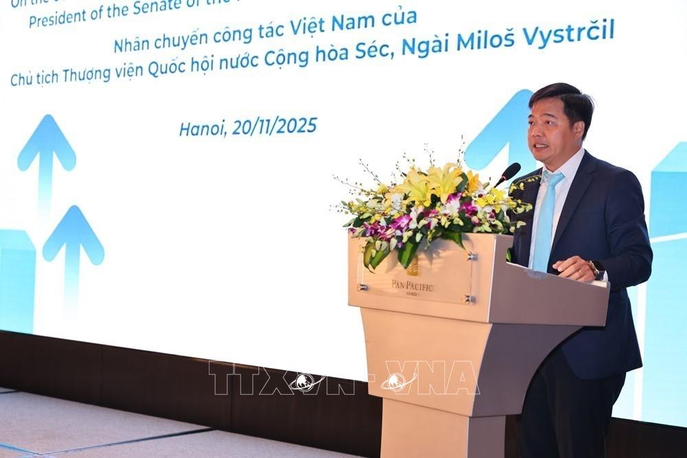 Hà Nội (TTXVN 20/11/2025) Sáng 20/11/2025, tại Hà Nội, Chủ tịch Thượng viện Quốc hội Cộng hòa Séc Milos Vystrcil gặp gỡ doanh nghiệp Séc – Việt Nam. Quang cảnh buổi gặp gỡ doanh nghiệp Séc – Việt Nam (20/11/2025). Ảnh: Minh Đức – TTXVNChủ tịch Thượng viện Quốc hội Cộng hòa Séc Milos Vystrcil phát biểu (20/11/2025). Ảnh: Minh Đức – TTXVNCác đại biểu tham dự buổi gặp gỡ doanh nghiệp Séc – Việt Nam (20/11/2025). Ảnh: Minh Đức – TTXVNBà Trần Thị lan Anh, Tổng Thư ký Liên đoàn Thương Mại và Công nghiệp Việt Nam phát biểu (20/11/2025). Ảnh: Minh Đức – TTXVNÔng Nguyễn Anh Tuấn - Phó Cục trưởng Cục Đầu tư nước ngoài (Bộ Tài chính) phát biểu (20/11/2025). Ảnh: Minh Đức – TTXVN