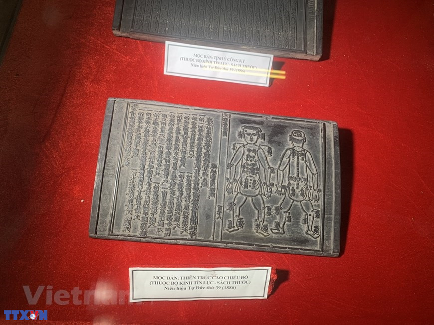 Những bản sách in từ mộc bản được trưng bày. (Ảnh: M.Mai/Vietnam+)