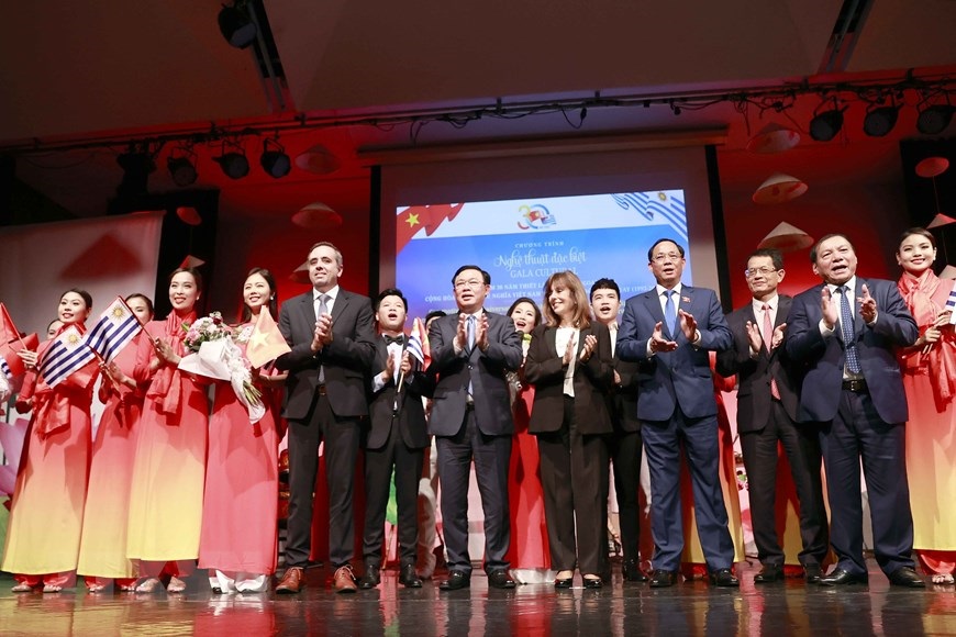 Tối 27/4/2023 (giờ địa phương), tại Nhà hát Vaz Ferreira ở thủ đô Montevideo, Chủ tịch Quốc hội Vương Đình Huệ dự Chương trình nghệ thuật kỷ niệm 30 năm thiết lập quan hệ ngoại giao Việt Nam-Uruguay.