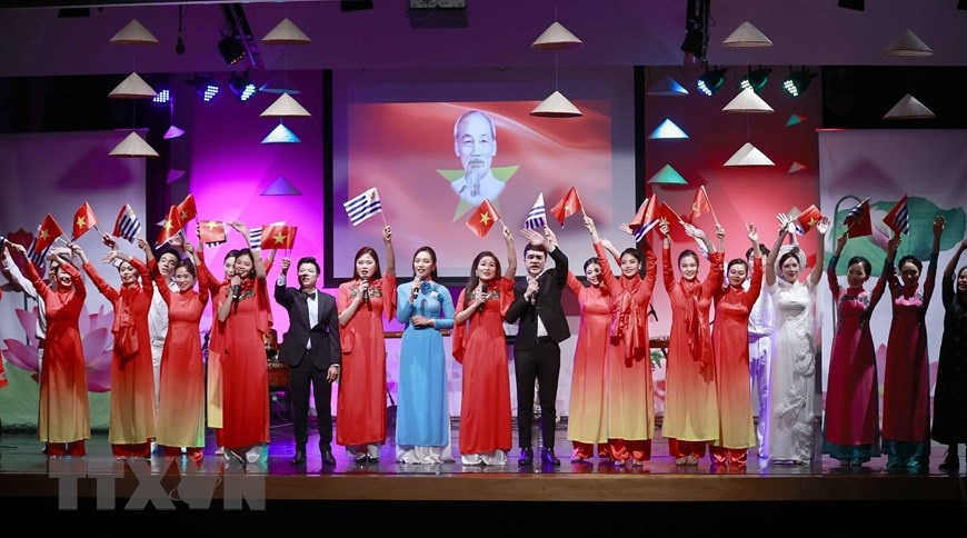 Chương trình nghệ thuật kỷ niệm 30 năm thiết lập quan hệ ngoại giao Việt Nam-Uruguay (1993-2023). (Ảnh: Doãn Tấn/TTXVN)