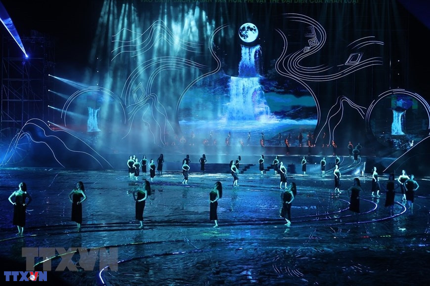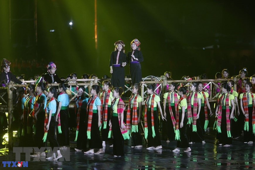 Chương trình nghệ thuật đặc biệt với chủ đề “Xoè Thái - Tinh hoa miền di sản”. (Ảnh: TTXVN)