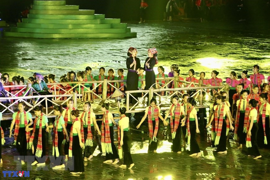 Chương trình nghệ thuật đặc biệt với chủ đề “Xoè Thái- Tinh hoa miền di sản”. (Ảnh: TTXVN phát)