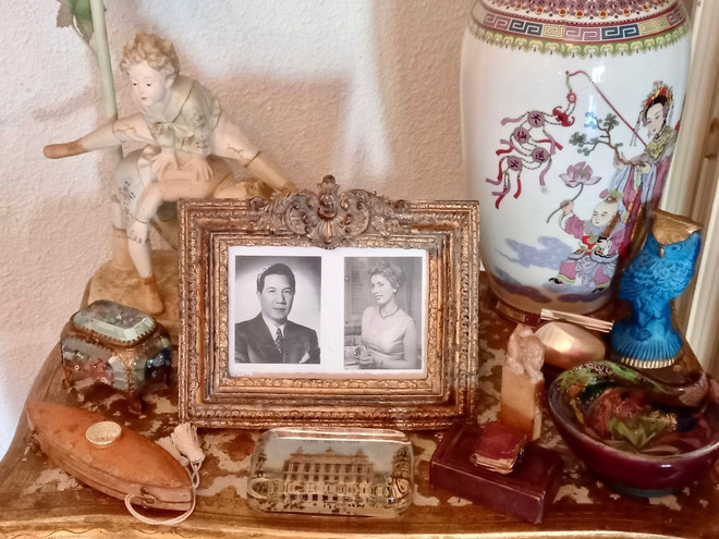 Bức ảnh vua cha Bảo Đại và mẹ ông, bà Christiane Bloch-Carcenac, được đặt bên chiếc bàn cạnh ghế sôpha, nơi ông thường ngồi tiếp khách.