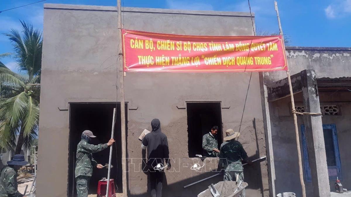 Mồ hôi của người lính Bộ đội Cụ Hồ đổ xuống từng căn nhà cho người dân trong Chiến dịch Quang Trung ở Lâm Đồng (13/1/2026). Ảnh: TTXVN phát