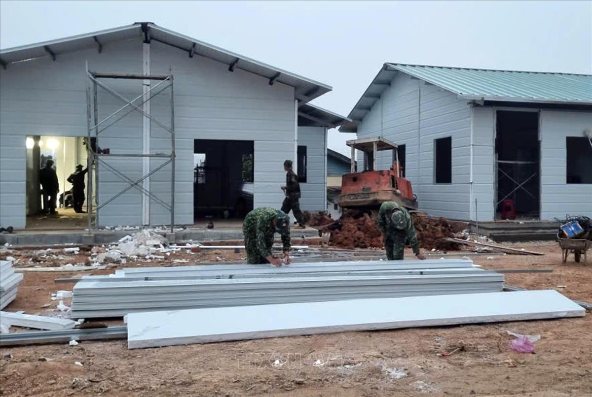 Những ngôi nhà của người dân bị thiên tai được các cán bộ, chiến sĩ Bộ chỉ huy Quân sự tỉnh Lâm Đồng xây mới đang hoàn thành (13/1/2026). Ảnh: TTXVN phát