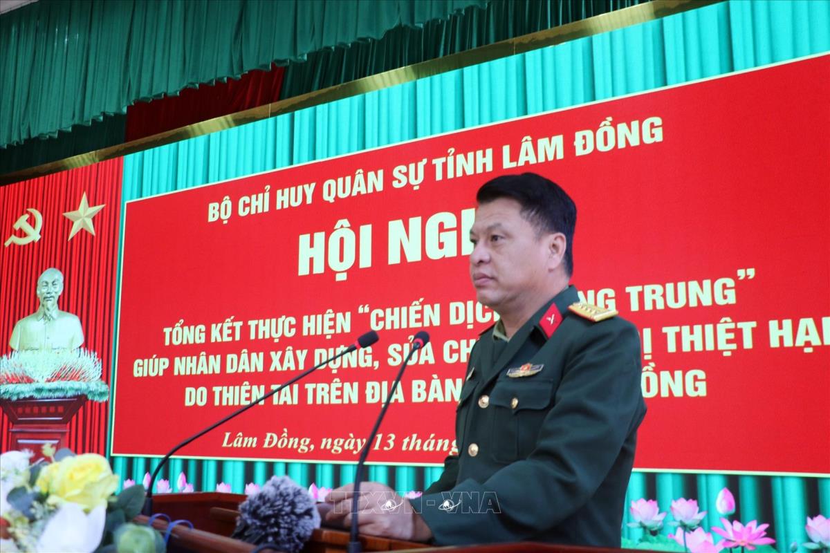 Đại tá Đinh Hồng Tiếng, Chỉ huy trưởng Bộ chỉ quân sự tỉnh Lâm Đồng, đánh giá kết quả Chiến dịch Quang Trung trên địa bàn tỉnh (13/1/2026). Ảnh: Chu Quốc Hùng - TTXVN