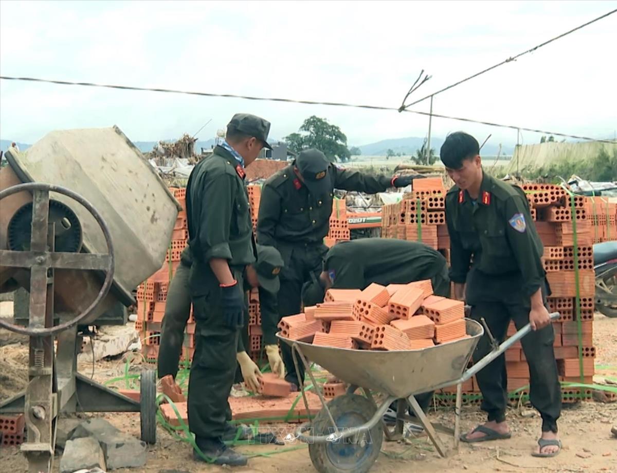 Lưc lượng Cảnh sát cơ động Công an tỉnh Lâm Đồng tham gia xây dựng nhà cho dân trong Chiến dịch Quang Trung (12/1/2026). Ảnh: TTXVN phát