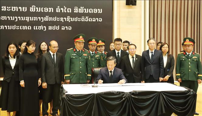 Hà Nội (TTXVN 5/4/2025) Theo phóng viên TTXVN tại Lào, ngày 5/4 tại thủ đô Viêng Chăn, đoàn đại biểu Đại sứ quán Việt Nam, các cơ quan bên cạnh Đại sứ quán và cộng đồng người Việt Nam tại Lào do Đại sứ đặc mệnh toàn quyền nước CHXHCN Việt Nam tại nước CHDCND Lào Nguyễn Minh Tâm làm Trưởng đoàn đã đến viếng đồng chí Khamtay Siphandone, nguyên Chủ tịch Đảng Nhân dân cách mạng Lào, nguyên Chủ tịch nước CHDCND Lào.