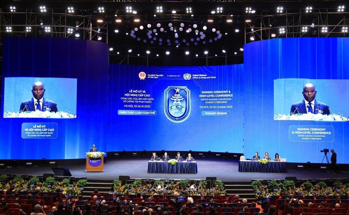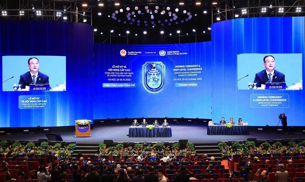 Hà Nội (TTXVN 26/10/2025) Sáng 26/10/2025, tại Trung tâm Hội nghị Quốc gia (Hà Nội) diễn ra Phiên thảo luận toàn thể thứ hai, trong khuôn khổ Lễ mở ký và Hội nghị cấp cao Công ước của Liên hợp quốc về Chống tội phạm mạng (Công ước Hà Nội).
