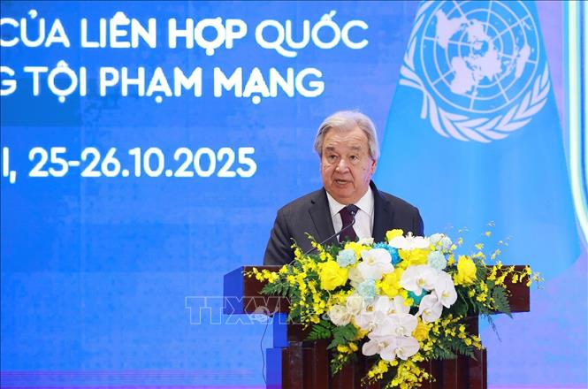 Nhấn mạnh, Công ước không chỉ là công cụ pháp lý, mà còn là lời hứa về mọi quốc gia đều được bảo vệ trên không gian mạng, mỗi quốc gia đều phải có các giải pháp để chống tội phạm mạng hiệu quả, Tổng Thư ký Liên hợp quốc một lần nữa cảm ơn sự thịnh tình và tiếng nói tiên phong của Việt Nam trên quốc tế về vấn đề chống tội phạm mạng.