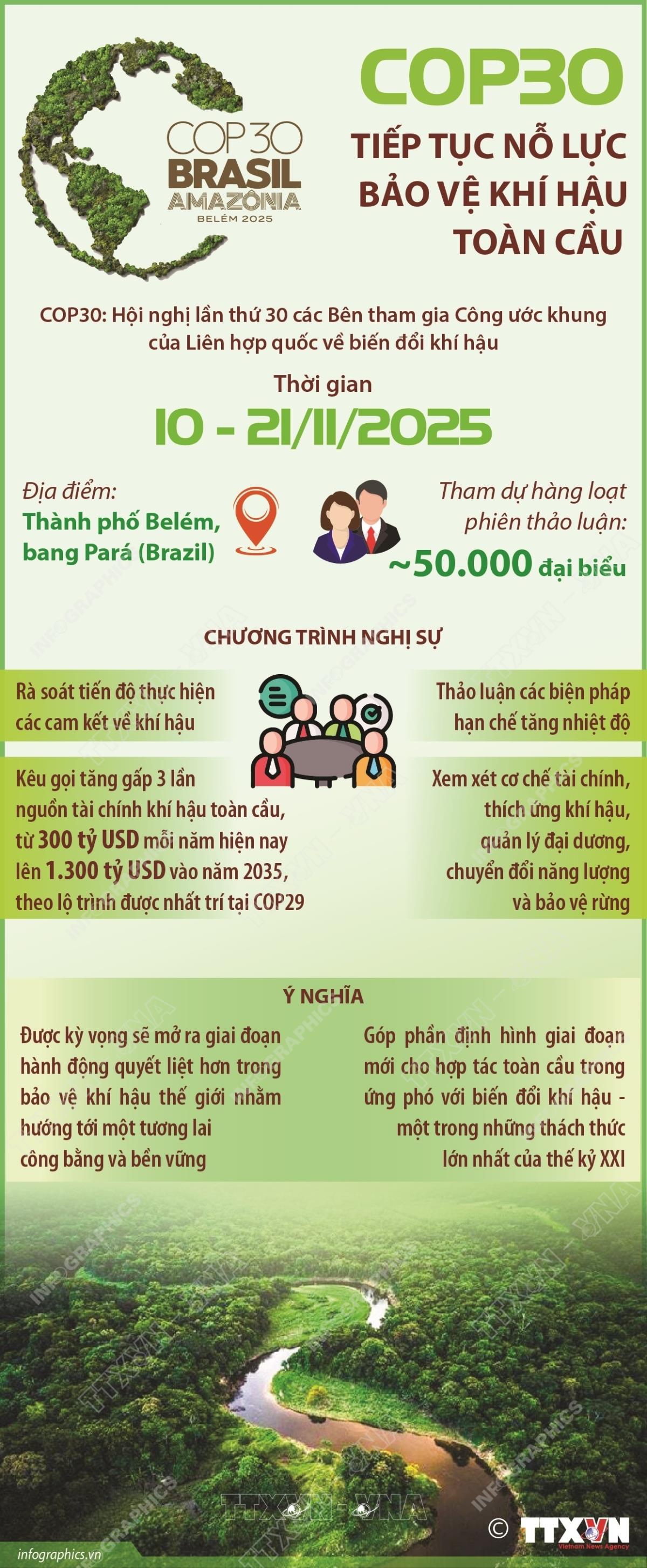 Hà Nội (TTXVN 13/11/2025) Ngày 12/11, Brazil cho biết sẽ gia hạn các cuộc đàm phán tại Hội nghị lần thứ 30 Các bên tham gia Công ước khung của Liên hợp quốc về biến đổi khí hậu (COP30) để tạo thêm thời gian cho các quốc gia thu hẹp bất đồng về những khác biệt gay gắt liên quan đến mục tiêu khí hậu và nguồn tài chính cần thiết để đạt được những mục tiêu đó.