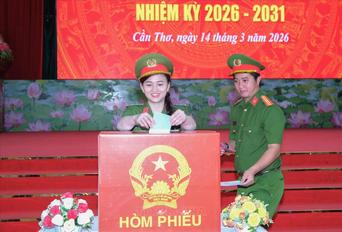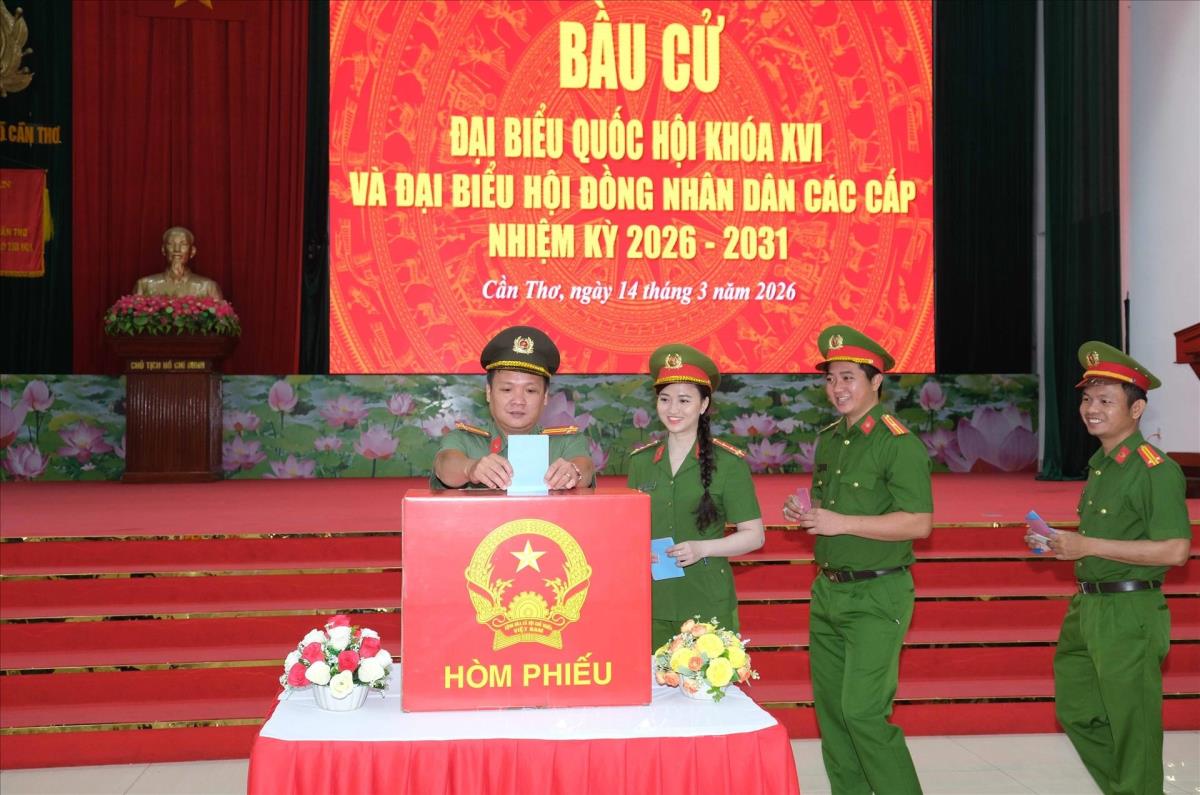 Cần Thơ (TTXVN 14/3/2026) Sáng 14/3/2026, hòa chung không khí phấn khởi của cử tri cả nước hướng về ngày hội lớn, các đơn vị lực lượng vũ trang trên địa bàn thành phố Cần Thơ gồm Công an và Quân đội đã đồng loạt tổ chức khai mạc và tiến hành bỏ phiếu bầu cử đại biểu Quốc hội khóa XVI và đại biểu Hội đồng nhân dân các cấp nhiệm kỳ 2026 - 2031. Theo quy định, ngày 15/3/2026 mới là ngày cử tri cả nước tham gia bầu cử, tuy nhiên, để góp phần bảo đảm an ninh trật tự trong thời gian cao điểm, lực lượng vũ trang thành phố đã đề xuất và được cấp có thẩm quyền cho phép thực hiện quyền công dân sớm hơn một ngày.