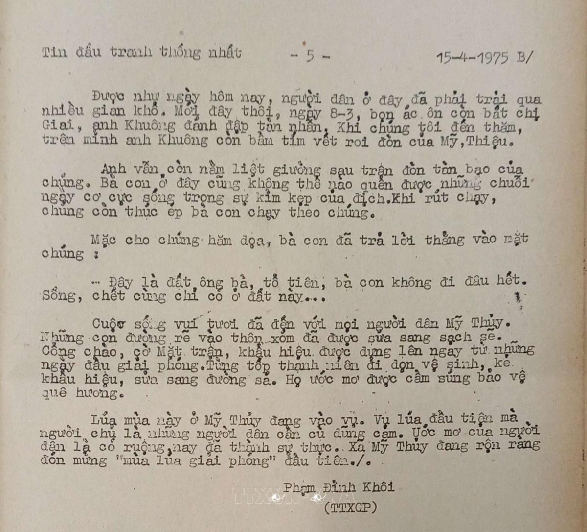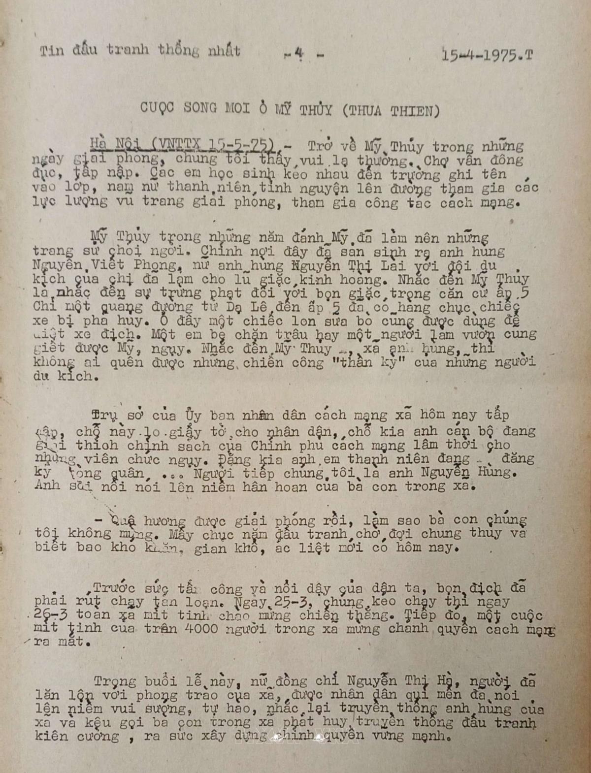 Cuộc sống mới ở Mỹ Thủy (Thừa Thiên) Tin đấu tranh thống nhất của Việt Nam Thông tấn xã, ngày 15/4/1975 Từ khóa:Giải phóng miền Namthống nhất đất nướcThông tấn xã Giải phóngMỹ ThủyHuế