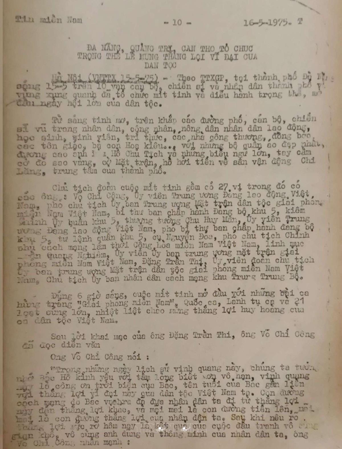 sự kiện Quốc phòng - An ninhViệt Nam Thông tấn xã đưa tin về ngày giải phóng miền Nam, thống nhất đất nước 30/4/1975