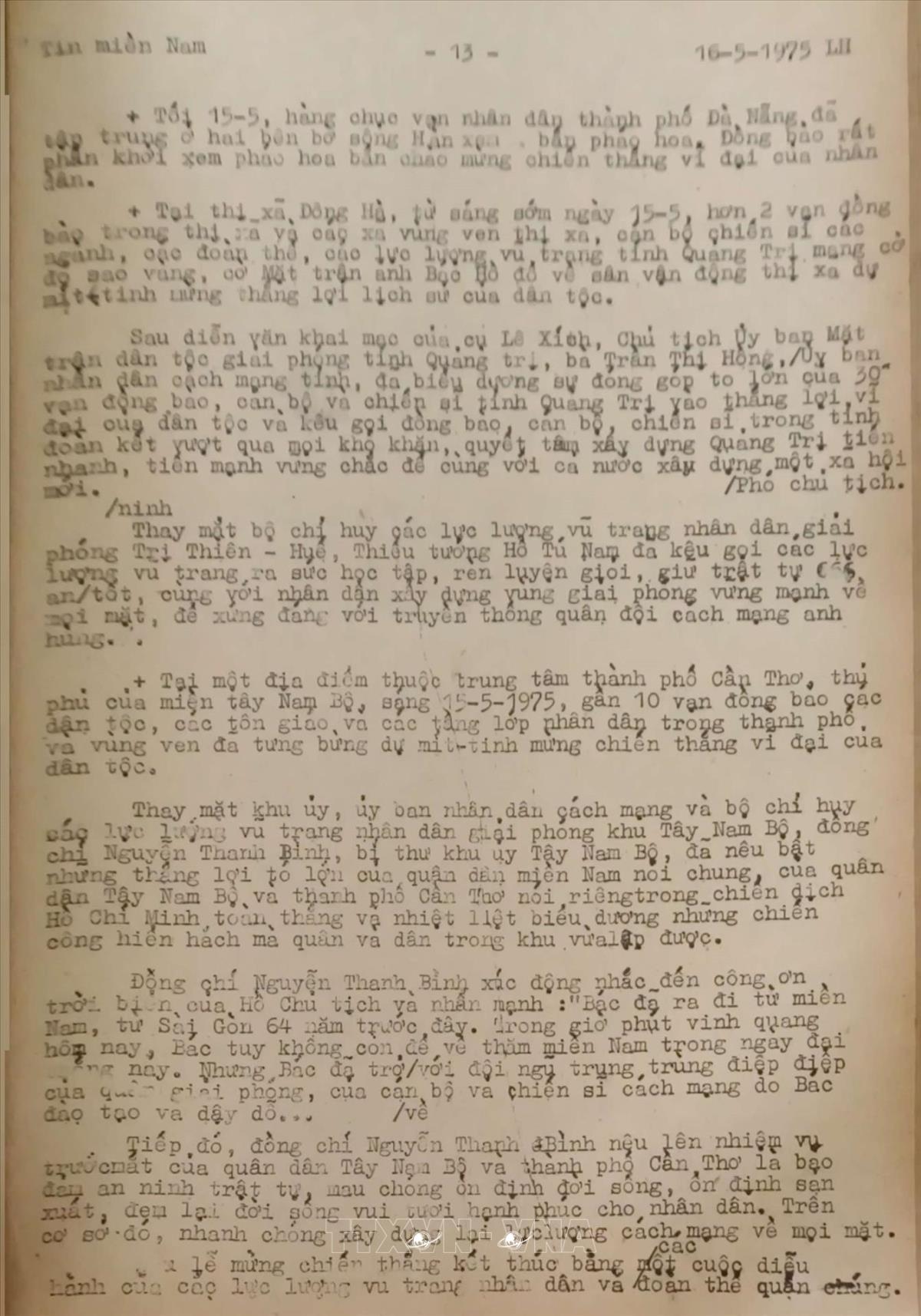 hồ sơ HS_QPA_000168464Việt Nam Thông tấn xã đưa tin về ngày giải phóng miền Nam, thống nhất đất nước 30/4/1975