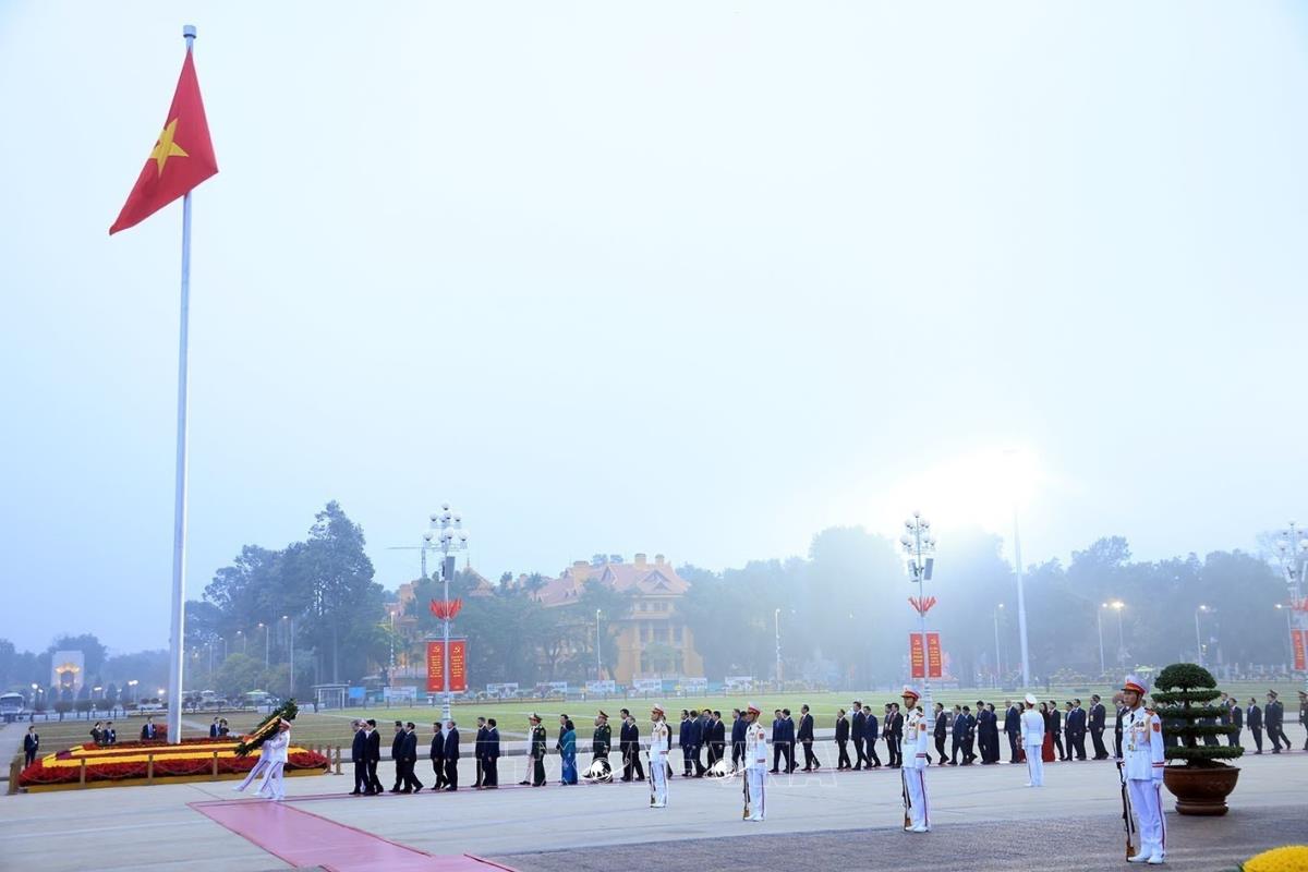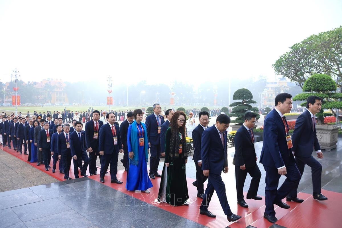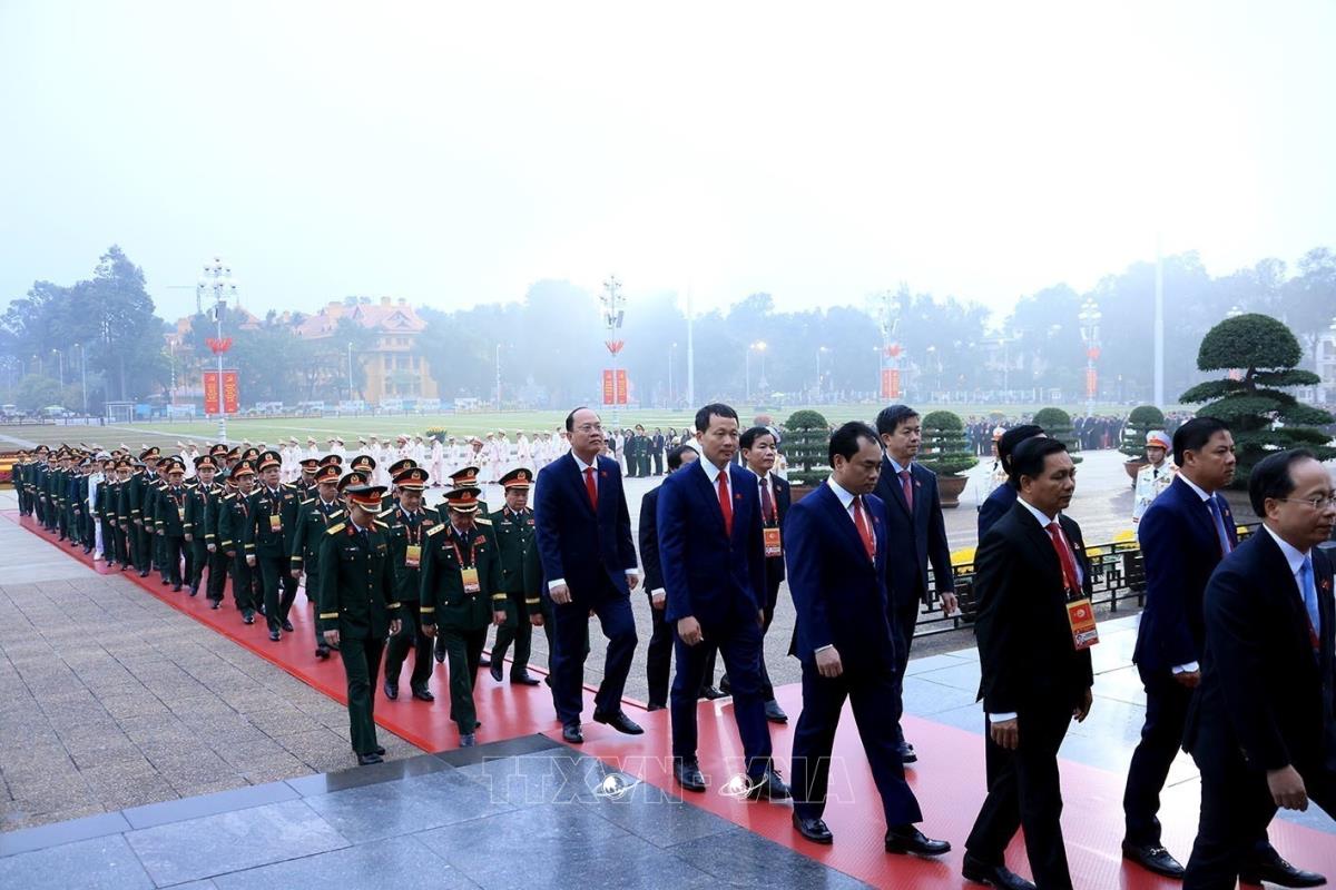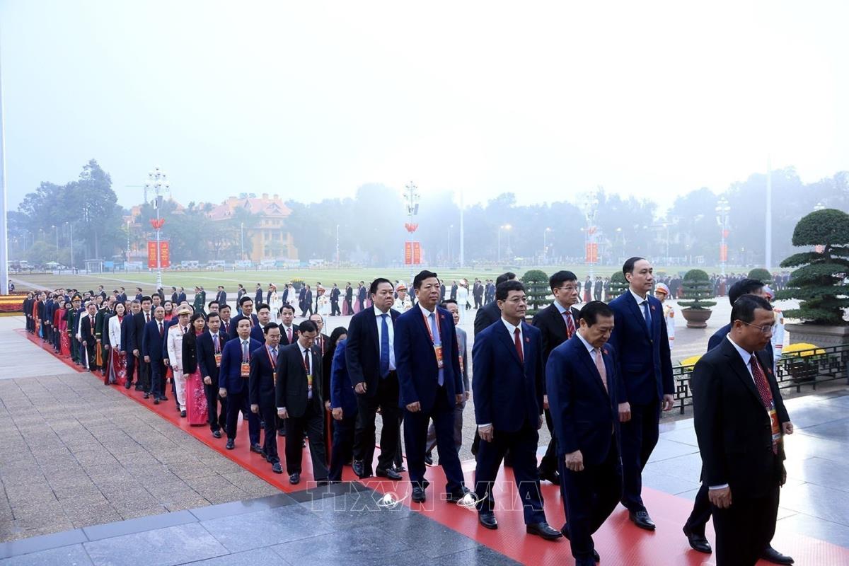 Các đại biểu vào Lăng viếng Chủ tịch Hồ Chí Minh (19/1/2026). Ảnh: TTXVN
