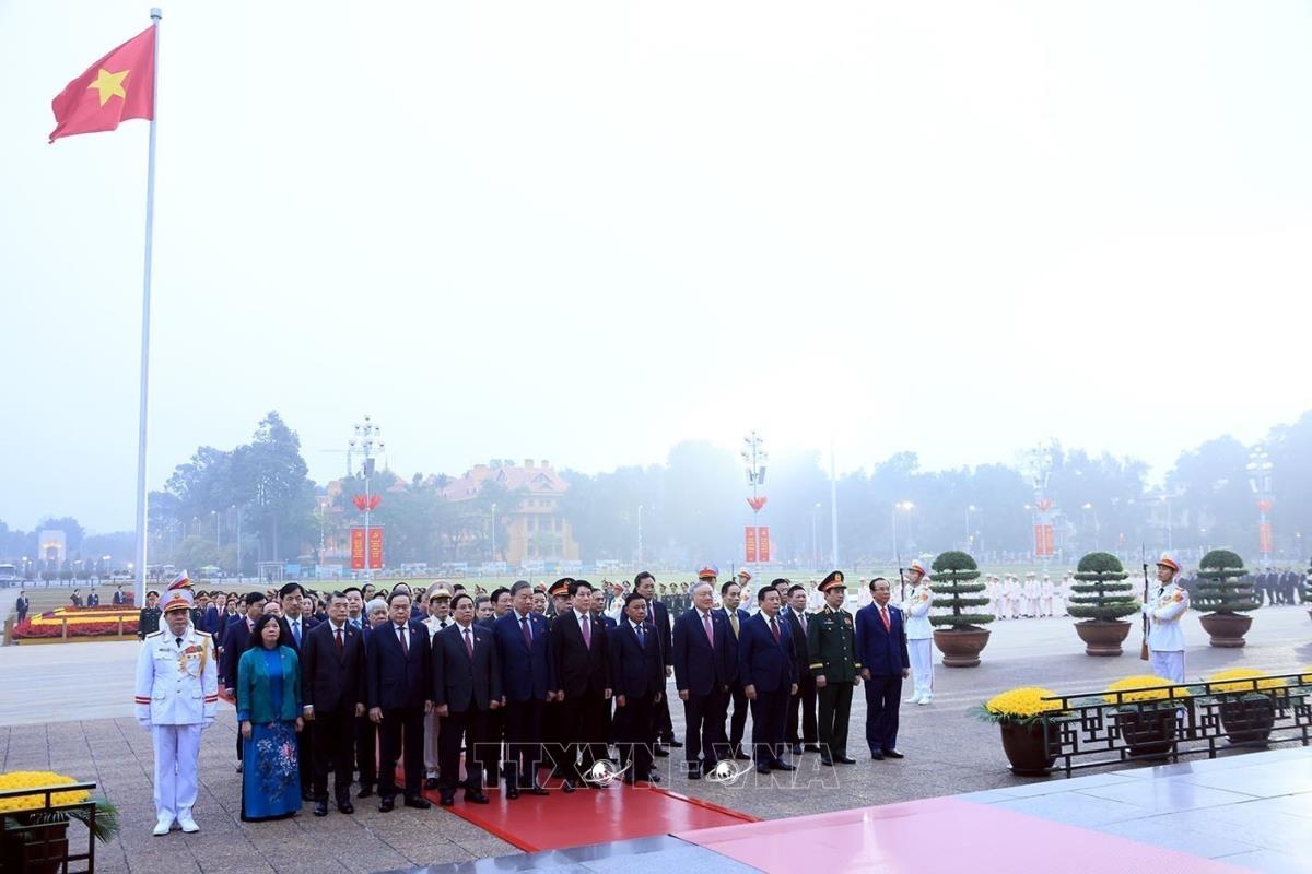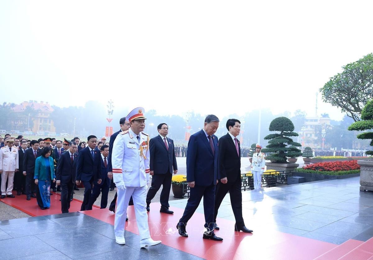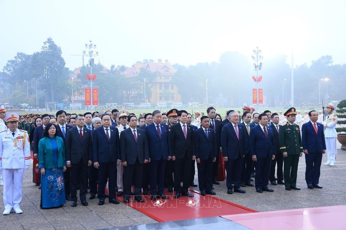 Các đại biểu vào Lăng viếng Chủ tịch Hồ Chí Minh (19/1/2026). Ảnh: TTXVN