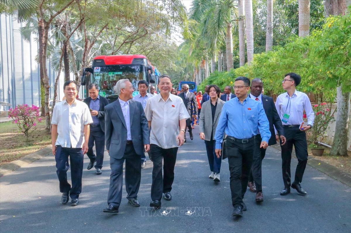 Phó Chủ tịch Quốc hội Nguyễn Đức Hải và đại biểu Liên minh Nghị viện Pháp ngữ tham quan Công ty cổ phần Nông nghiệp công nghệ cao Trung An, quận Thốt Nốt (22/1/2025). Ảnh: Thanh Liêm - TTXVN