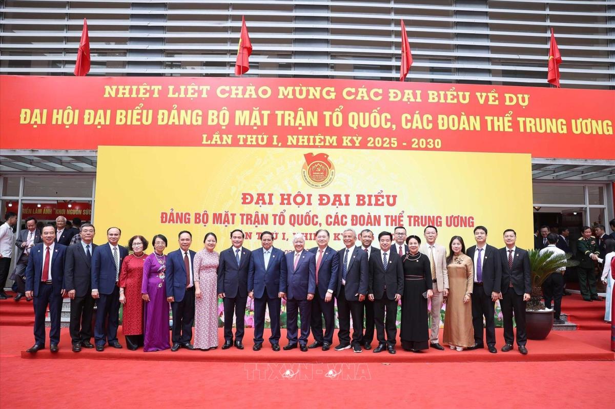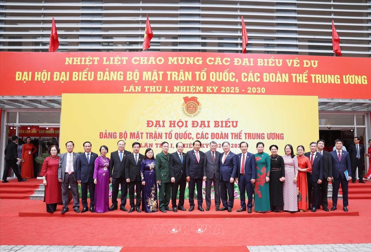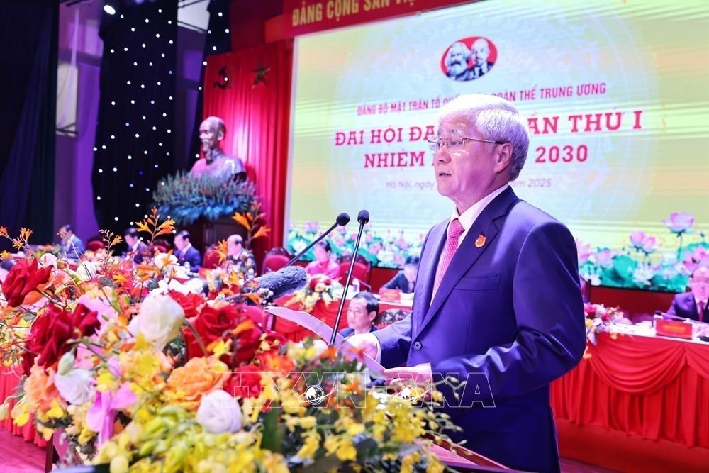 Hà Nội (TTXVN 23/9/2025) Sáng 23/9/2025, tại Hà Nội, Đại hội đại biểu Đảng bộ Mặt trận Tổ quốc, các đoàn thể Trung ương lần thứ nhất, nhiệm kỳ 2025 - 2030 khai mạc trọng thể, với sự tham dự của 346 đại biểu chính thức đại diện cho hơn 5.000 đảng viên của Đảng bộ Mặt trận Tổ quốc, các đoàn thể Trung ương. Tổng Bí thư Tô Lâm dự và phát biểu chỉ đạo Đại hội. Cùng dự có các đồng chí: Phạm Minh Chính, Ủy viên Bộ Chính trị, Bí thư Đảng ủy Chính phủ, Thủ tướng Chính phủ; Trần Cẩm Tú, Ủy viên Bộ Chính trị, Bí thư Đảng ủy các cơ quan đảng Trung ương, Thường trực Ban Bí thư cùng nhiều đồng chí Lãnh đạo, nguyên Lãnh đạo Đảng, Nhà nước.