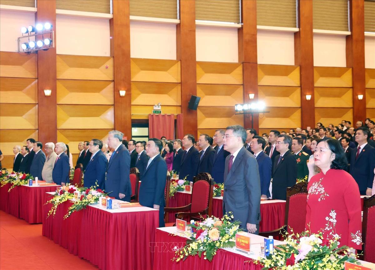 Tổng Bí thư Tô Lâm và các đồng chí Lãnh đạo, nguyên Lãnh đạo Đảng, Nhà nước dự Đại hội (23/9/2025). Ảnh: Thống Nhất – TTXVN