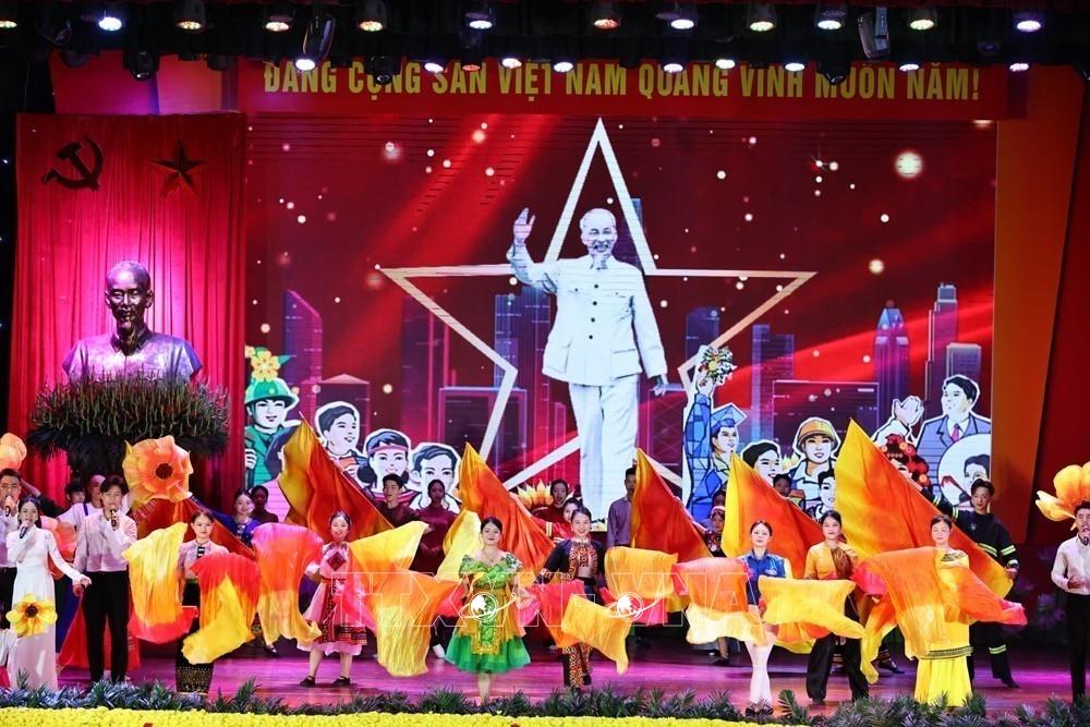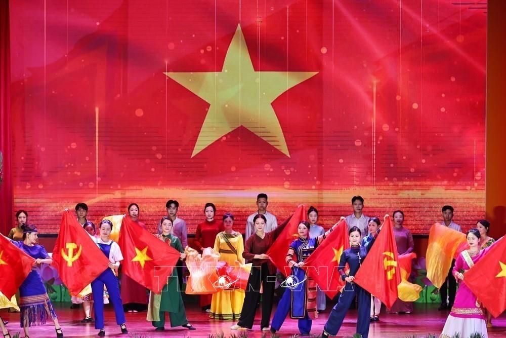 Văn nghệ chào mừng Đại hội đại biểu Đảng bộ MTTQ, các đoàn thể Trung ương lần thứ nhất, nhiệm kỳ 2025-2030 (23/9/2025). Ảnh: Minh Đức – TTXVN