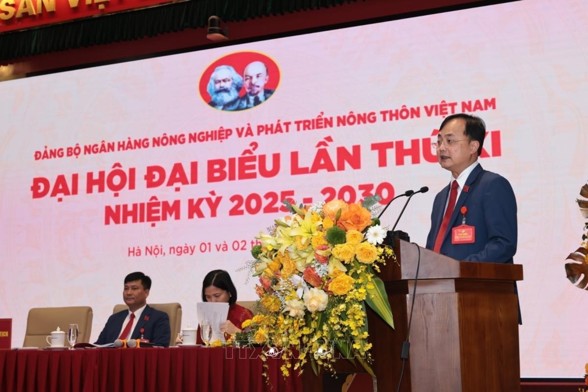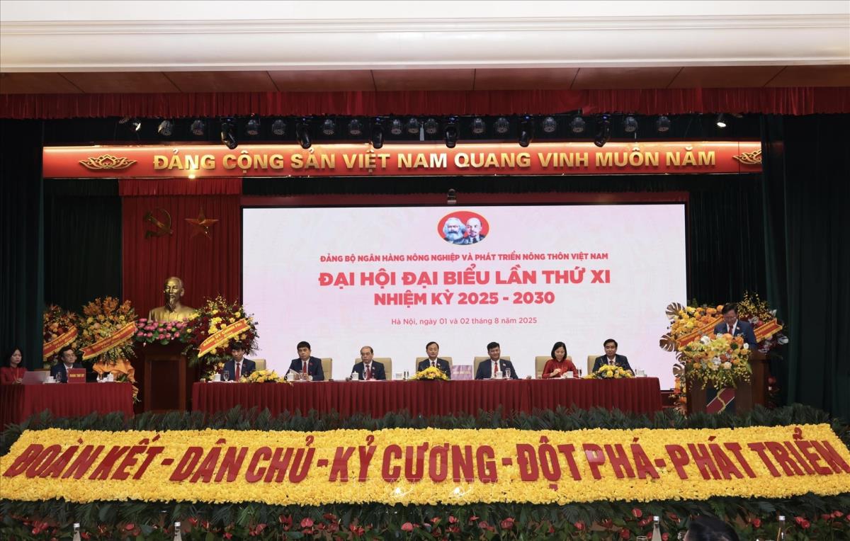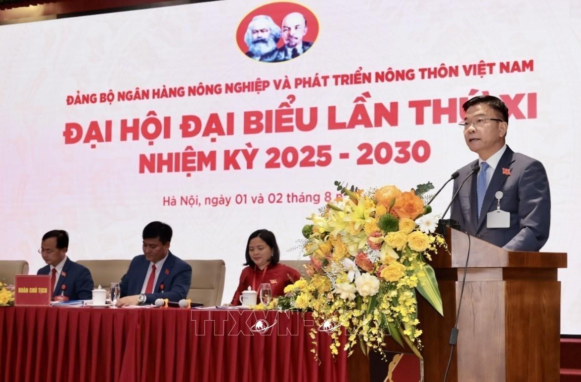 Hà Nội (TTXVN 2/8/2025) Trong 2 ngày 1 và 2/8/2025, tại Hà Nội, Đảng bộ Ngân hàng Nông nghiệp và Phát triển Nông thôn Việt Nam (Agribank) tổ chức Đại hội đại biểu lần thứ 11, nhiệm kỳ 2025 - 2030. Đồng chí Lê Thành Long, Ủy viên Trung ương Đảng, Ủy viên Ban Thường vụ Đảng ủy Chính phủ, Phó Thủ tướng Chính phủ và đồng chí Nguyễn Thị Thanh, Ủy viên Trung ương Đảng, Ủy viên Ban Thường vụ Đảng ủy Quốc hội, Phó Chủ tịch Quốc hội tham dự.