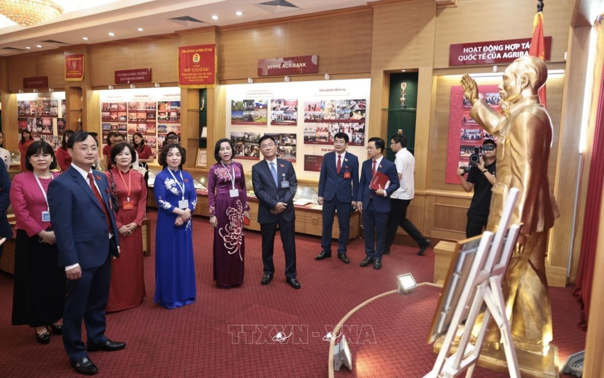 Các đại biểu tham quan phòng truyền thống Agribank (2/8/2025). Ảnh: Trần Việt - TTXVN