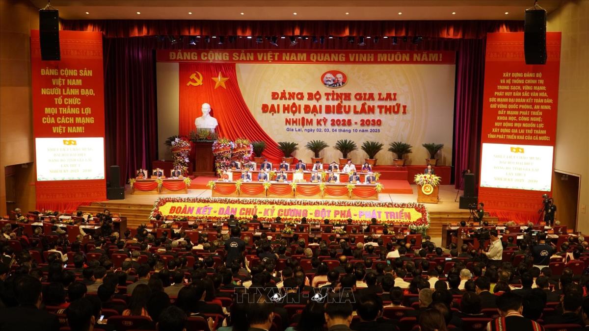 Gia Lai (TTXVN 3/10/2025) Sáng 3/10/2025, Đảng bộ tỉnh Gia Lai long trọng tổ chức Đại hội đại biểu lần thứ nhất, nhiệm kỳ 2025 - 2030, với chủ đề “Xây dựng Đảng bộ và hệ thống chính trị trong sạch, vững mạnh; phát huy bản sắc văn hóa, sức mạnh đại đoàn kết toàn dân; giữ vững quốc phòng, an ninh; đẩy mạnh phát triển khoa học, công nghệ; huy động mọi nguồn lực xây dựng Gia Lai trở thành tỉnh phát triển khá của cả nước”. Đồng chí Nguyễn Trọng Nghĩa, Ủy viên Bộ Chính trị, Bí thư Trung ương Đảng, Trưởng Ban Tuyên giáo và Dân vận Trung ương, dự và phát biểu chỉ đạo Đại hội.