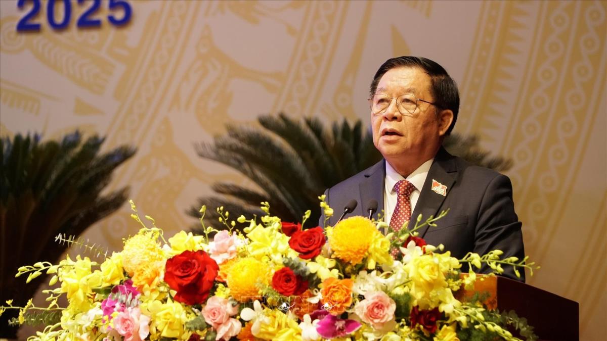 Đồng chí Nguyễn Trọng Nghĩa, Ủy viên Bộ Chính trị, Bí thư Trung ương Đảng, Trưởng Ban Tuyên giáo và Dân vận Trung ương, phát biểu tại Đại hội (3/10/2025). Ảnh: Đình Quân-TTXVN