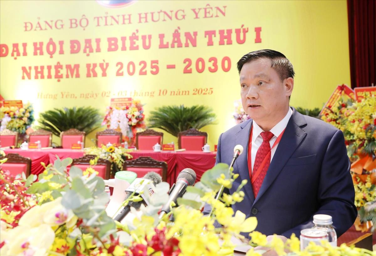 Hưng Yên (TTXVN 3/10/2025) Sáng 3/10/2025, Đảng bộ tỉnh Hưng Yên tổ chức Đại hội đại biểu lần thứ nhất, nhiệm kỳ 2025-2030 với 438 đại biểu đại diện cho trên 182.000 đảng viên đến từ 108 tổ chức Đảng trực thuộc Đảng bộ tỉnh. Ủy viên Bộ Chính trị, Bí thư Trung ương Đảng, Chủ nhiệm Ủy ban Kiểm tra Trung ương Nguyễn Duy Ngọc; Phó Chủ tịch Quốc hội Nguyễn Khắc Định; Phó Thủ tướng Chính phủ Bùi Thanh Sơn cùng lãnh đạo, nguyên lãnh đạo Đảng, Nhà nước và sở ban ngành trong tỉnh tham dự.